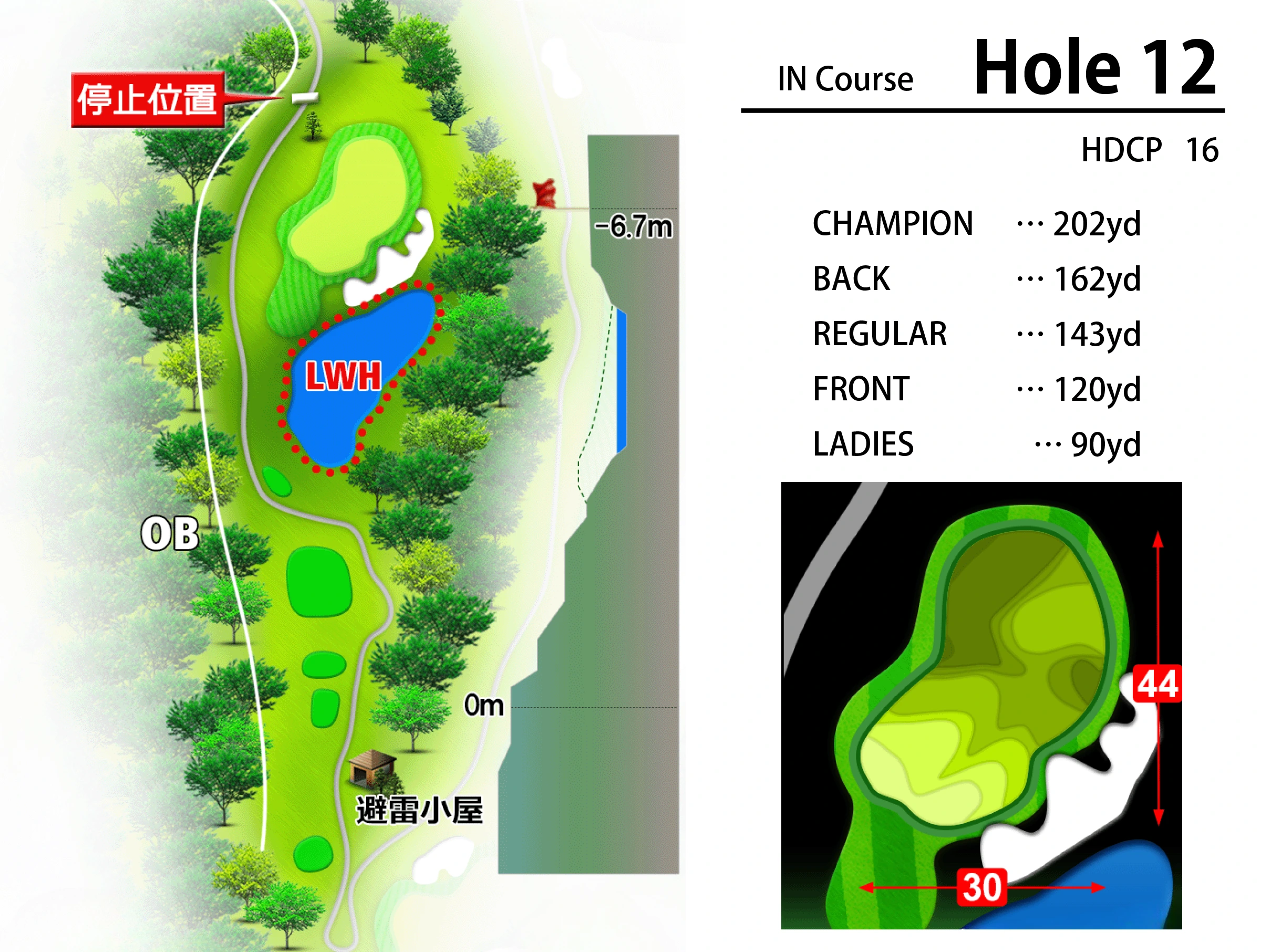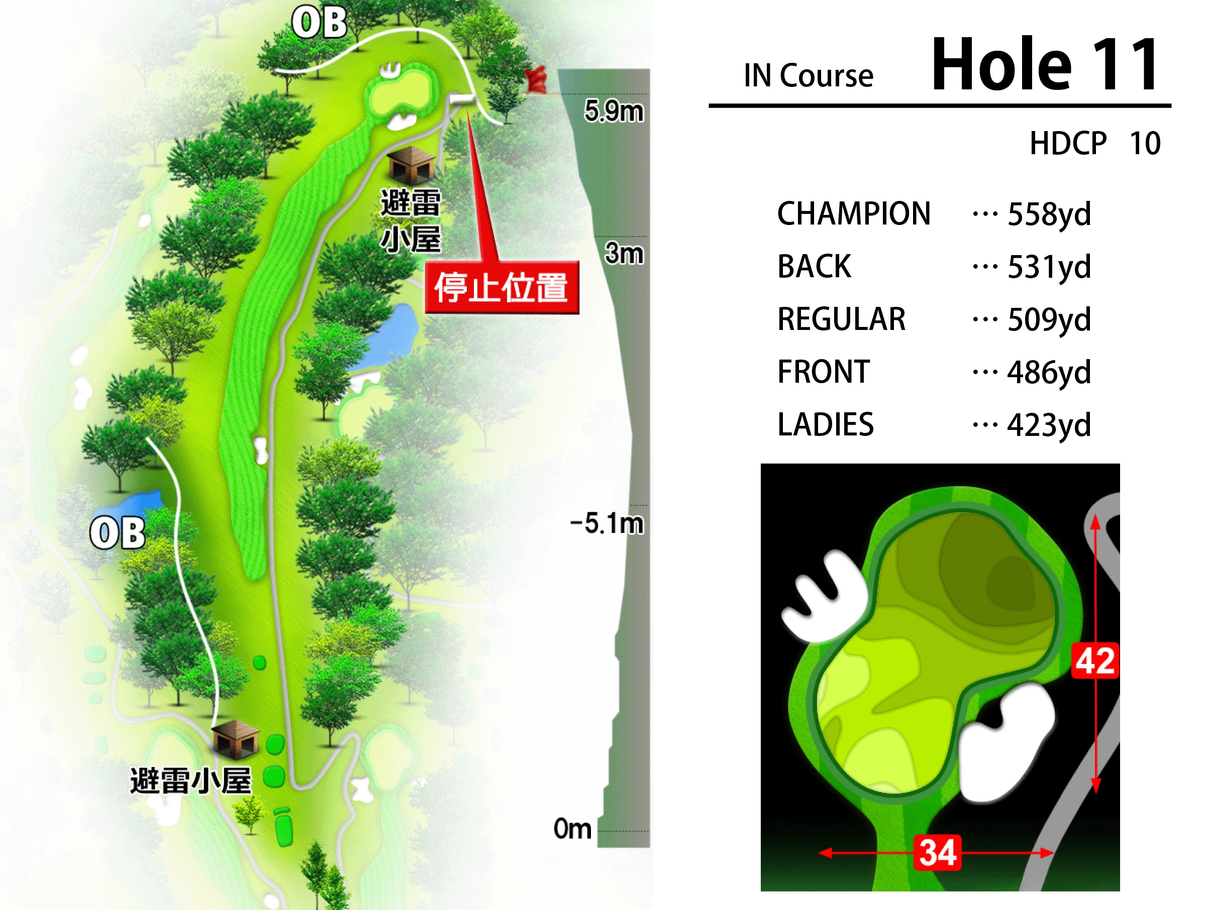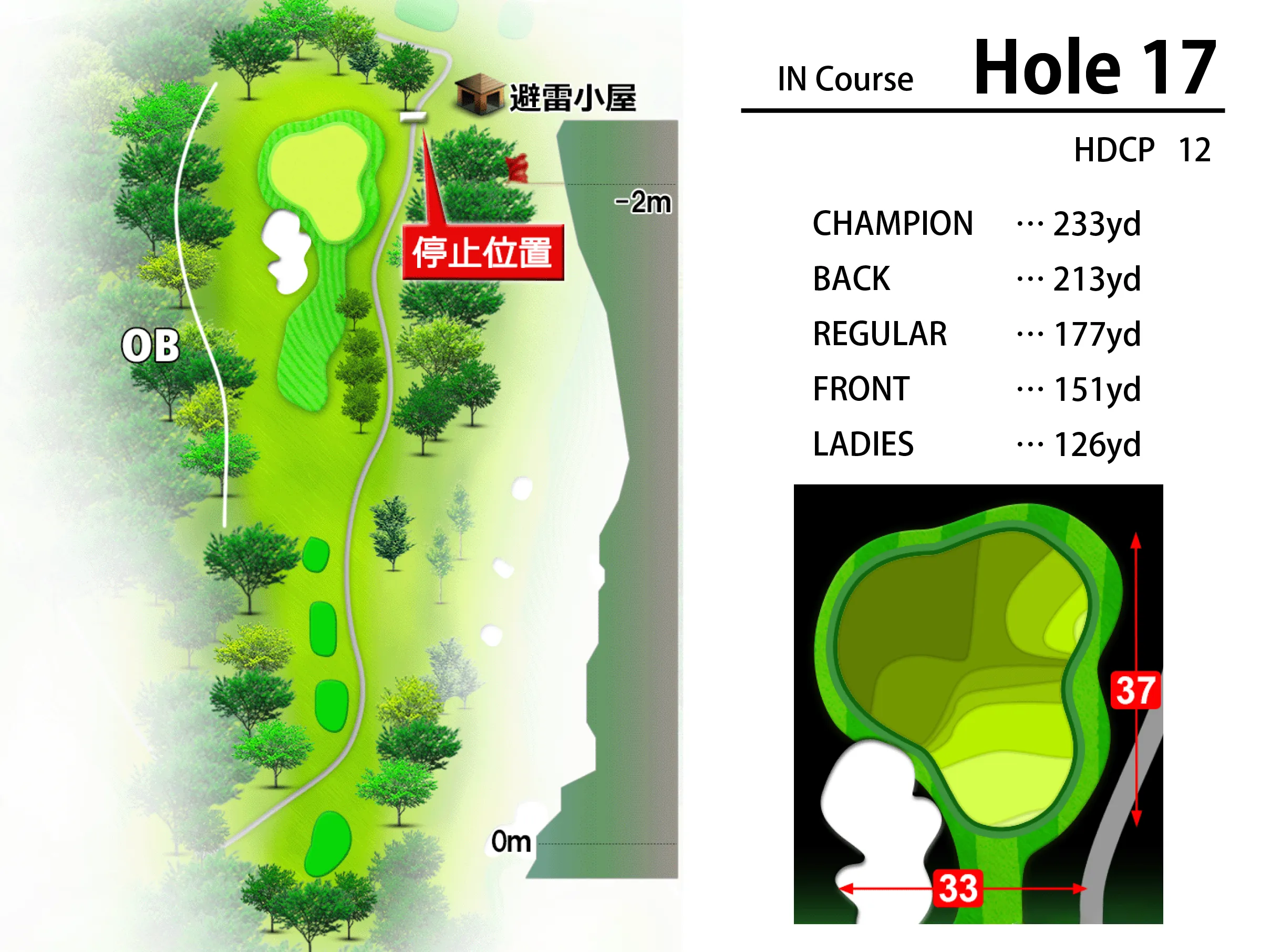 ドラコン推奨ホール: 11番ホール、14番ホール ニアピン推奨ホール: 12番ホール、17番ホール