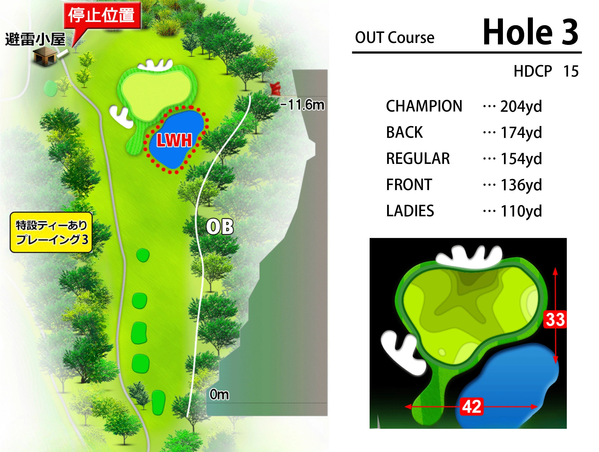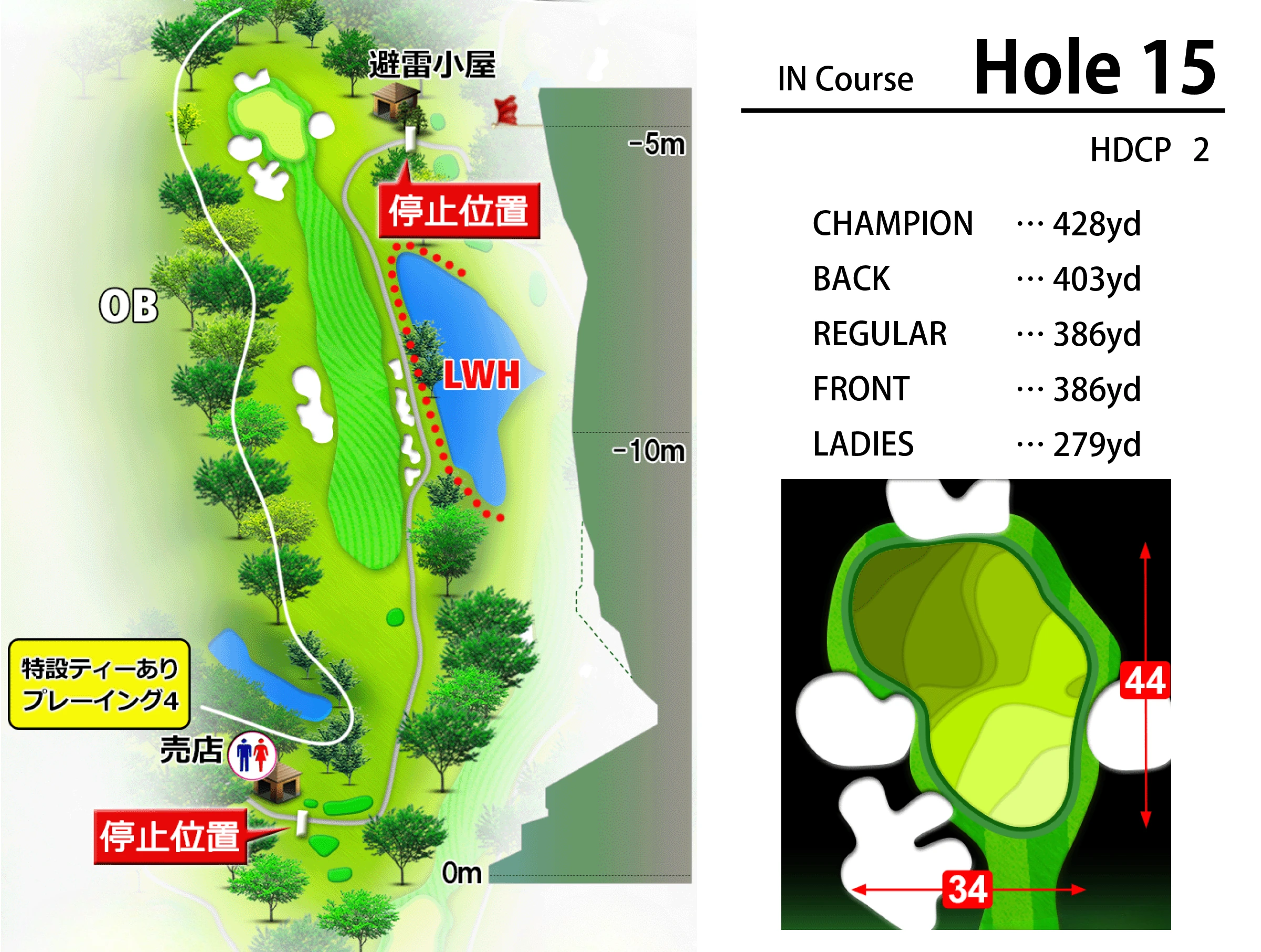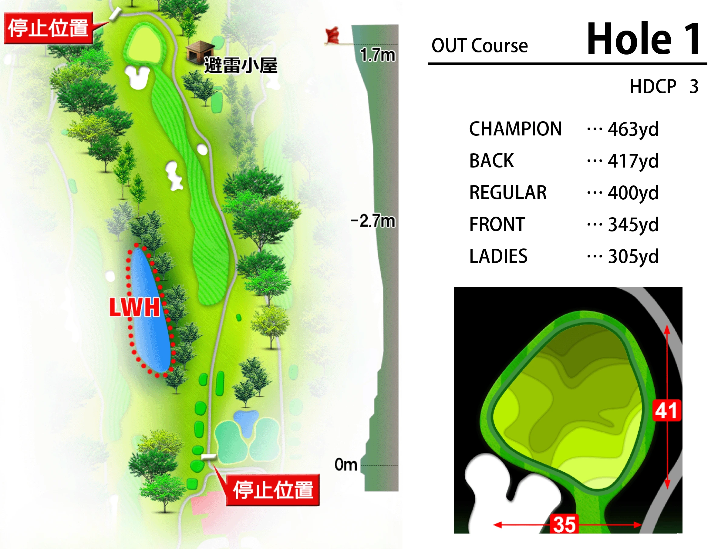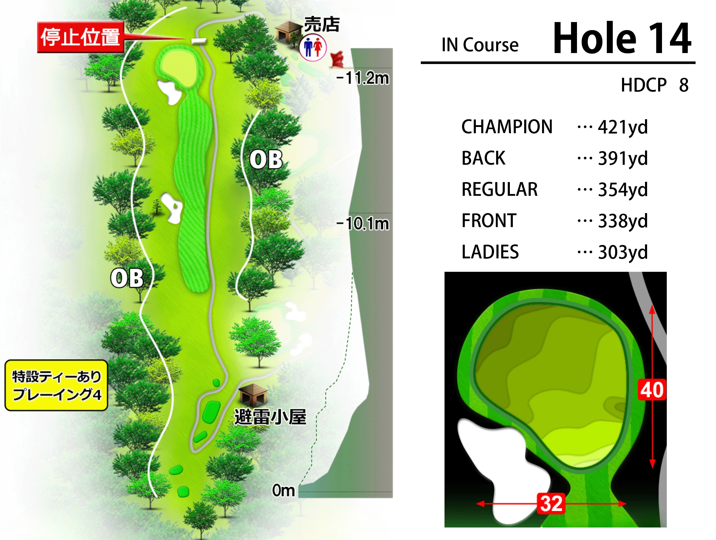 ドラコン推奨ホール: 11番ホール、14番ホール ニアピン推奨ホール: 12番ホール、17番ホール