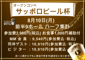 オープンコンペ サッポロビール杯 8月10日(月)開催いたします。