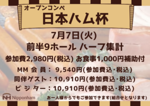 オープンコンペ 日本ハム杯 7月7日(火)開催いたします。